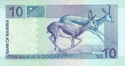 Доллар Намибии. Купюра номиналом в 10 NAD, реверс.