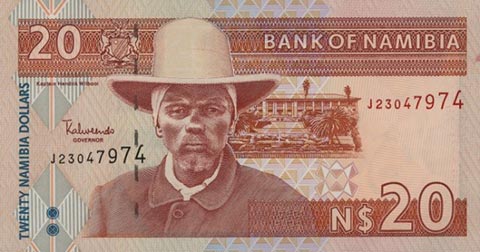 Доллар Намибии. Купюра номиналом в 20 NAD, аверс.