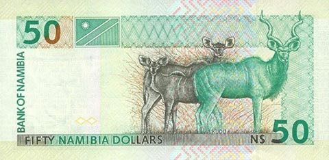 Доллар Намибии. Купюра номиналом в 50 NAD, реверс.