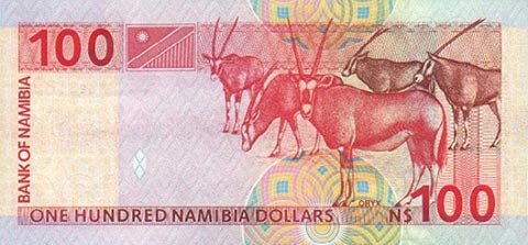 Доллар Намибии. Купюра номиналом в 100 NAD, реверс.