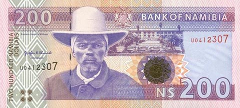 Доллар Намибии. Купюра номиналом в 200 NAD, аверс.