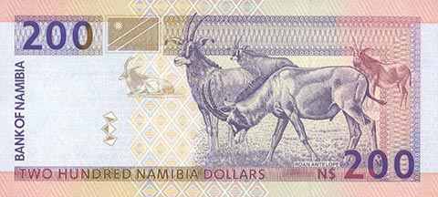Доллар Намибии. Купюра номиналом в 200 NAD, реверс.