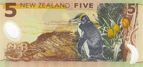 Новозеландский доллар. Купюра номиналом 5 NZD, реверс.