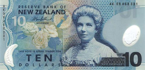 Новозеландский доллар. Купюра номиналом 10 NZD, аверс.