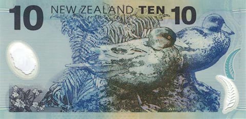 Новозеландский доллар. Купюра номиналом 10 NZD, реверс.