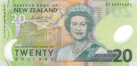 Новозеландский доллар. Купюра номиналом 20 NZD, аверс.