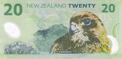 Новозеландский доллар. Купюра номиналом 20 NZD, реверс.