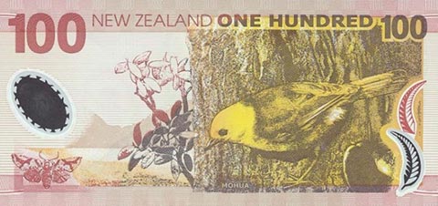 Новозеландский доллар. Купюра номиналом 100 NZD, реверс.