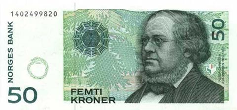 Норвежская крона. Купюра номиналом в 50 NOK, аверс.