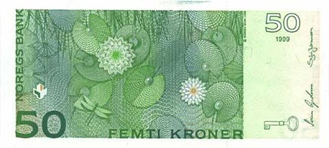 Норвежская крона. Купюра номиналом в 50 NOK, реверс.