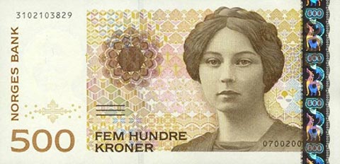 Норвежская крона. Купюра номиналом в 500 NOK, аверс.
