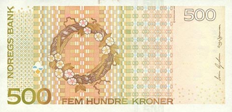 Норвежская крона. Купюра номиналом в 500 NOK, реверс.