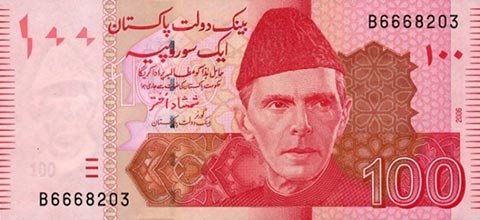 Пакистанская рупия. Купюра номиналом в 100 PKR, аверс.
