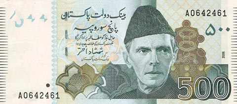 Пакистанская рупия. Купюра номиналом в 500 PKR, аверс.