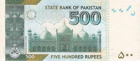 Пакистанская рупия. Купюра номиналом в 500 PKR, реверс.