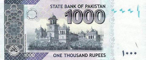 Пакистанская рупия. Купюра номиналом в 1000 PKR, реверс.