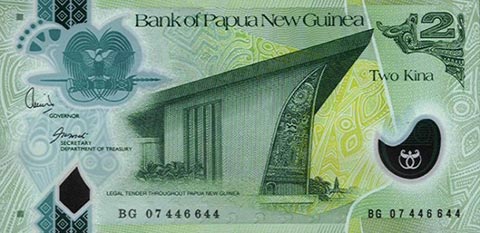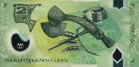 Кина П-Нов гвинея. Купюра номиналом в 2 PGK, реверс.