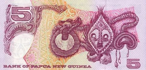 Кина П-Нов гвинея. Купюра номиналом в 5 PGK, реверс.