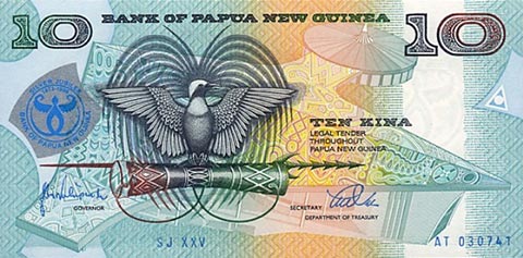 Кина П-Нов гвинея. Купюра номиналом в 10 PGK, аверс.