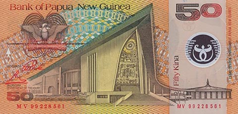 Кина П-Нов гвинея. Купюра номиналом в 50 PGK, реверс.