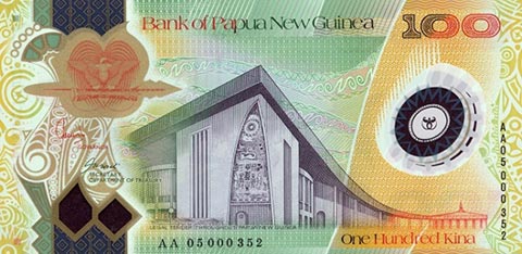 Кина П-Нов гвинея. Купюра номиналом в 100 PGK, реверс.