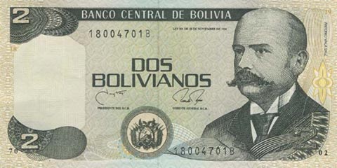 Боливийский боливиано. Купюра номиналом в 2 BOB, аверс.