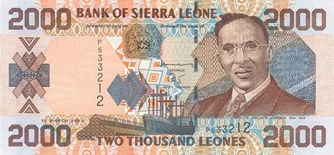 Сьерра-Леонский леоне. Купюра номиналом в 2000 SLL, аверс.