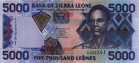 Сьерра-Леонский леоне. Купюра номиналом в 5000 SLL, аверс.