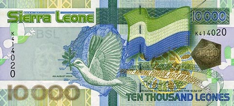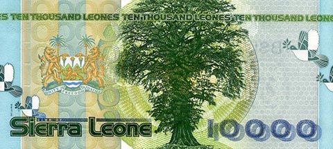 Сьерра-Леонский леоне. Купюра номиналом в 10000 SLL, реверс.