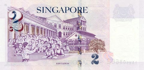 Сингапурский доллар. Купюра номиналом в 2 SGD, реверс.