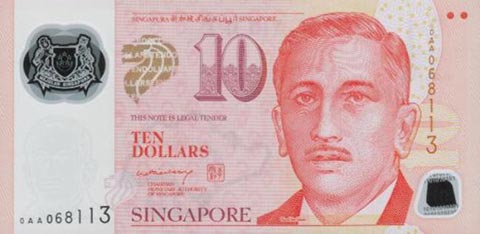 Сингапурский доллар. Купюра номиналом в 10 SGD, аверс.