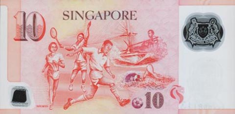 Сингапурский доллар. Купюра номиналом в 10 SGD, реверс.
