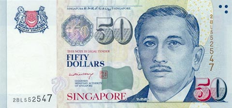 Сингапурский доллар. Купюра номиналом в 50 SGD, аверс.