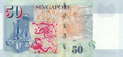 Сингапурский доллар. Купюра номиналом в 50 SGD, реверс.