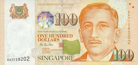 Сингапурский доллар. Купюра номиналом в 100 SGD, аверс.