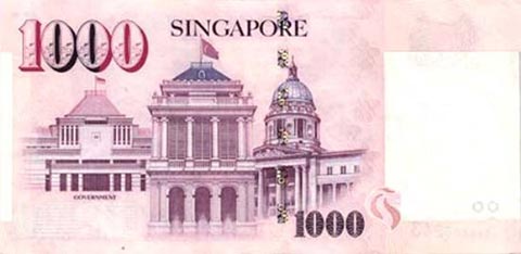 Сингапурский доллар. Купюра номиналом в 1000 SGD, реверс.