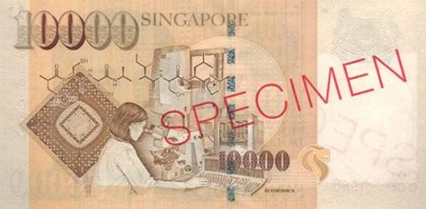 Сингапурский доллар. Купюра номиналом в 10000 SGD, реверс.