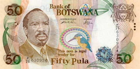 Ботсванская пула. Купюра номиналом в 50 BWP, аверс.