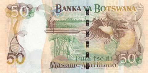Ботсванская пула. Купюра номиналом в 50 BWP, реверс.
