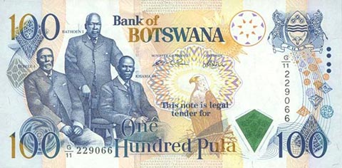 Ботсванская пула. Купюра номиналом в 100 BWP, аверс.