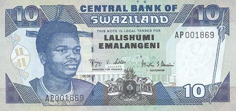 Свазилендский лилангени. Купюра номиналом в 10 SZL, аверс.