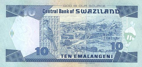 Свазилендский лилангени. Купюра номиналом в 10 SZL, реверс.