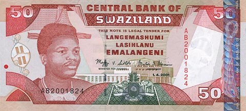 Свазилендский лилангени. Купюра номиналом в 50 SZL, аверс.
