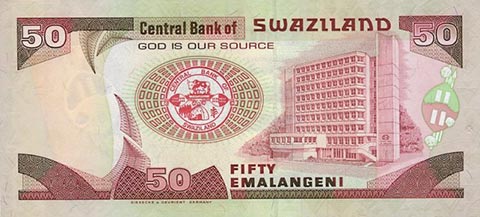 Свазилендский лилангени. Купюра номиналом в 50 SZL, реверс.