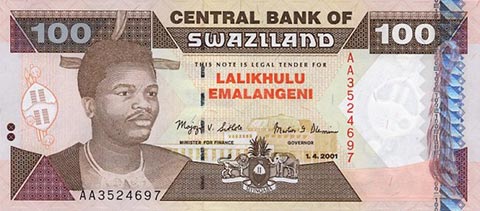Свазилендский лилангени. Купюра номиналом в 100 SZL, аверс.