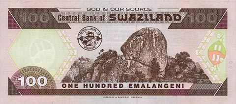 Свазилендский лилангени. Купюра номиналом в 100 SZL, реверс.