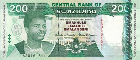 Свазилендский лилангени. Купюра номиналом в 200 SZL,аверс.