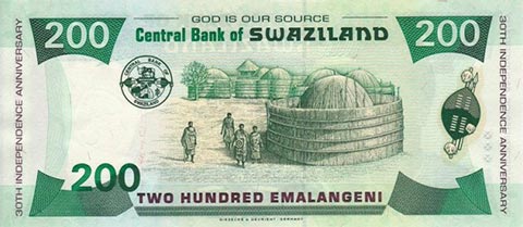 Свазилендский лилангени. Купюра номиналом в 200 SZL, реверс.