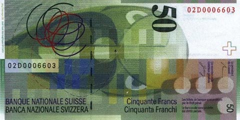 Швейцарский франк. Купюра номиналом в 50 CHF, аверс.