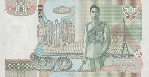 Тайладнский бат. Купюра номиналом в 20 THB, реверс.